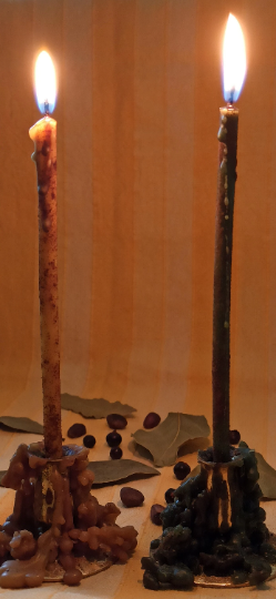 Die handgefertigten, durchgefärbten Bienenwachskerzen wird individuell nach Bedarf energetisch und spirituell auf „Materielle Fülle" und "Geldfluss“ von Alexandra oder Micha zur passende Mondphase und anderen passenden magischen Kriterien geweiht.